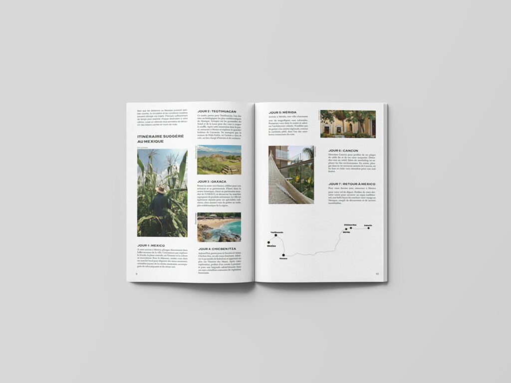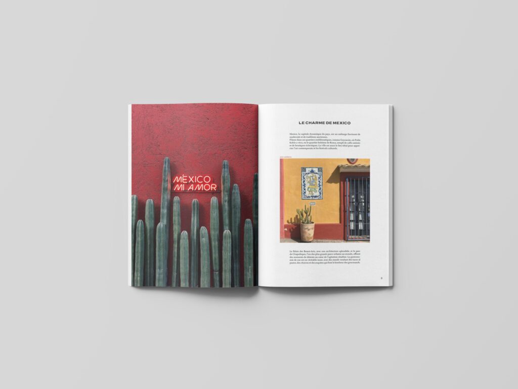 Réalisation d’un magazine éditorial dédié au Mexique, mettant en valeur la richesse culturelle, architecturale et visuelle du pays. Le projet explore l’équilibre entre photographie, typographie et mise en page afin de proposer une lecture immersive et esthétique, inspirée par les couleurs, les textures et l’atmosphère mexicaine.