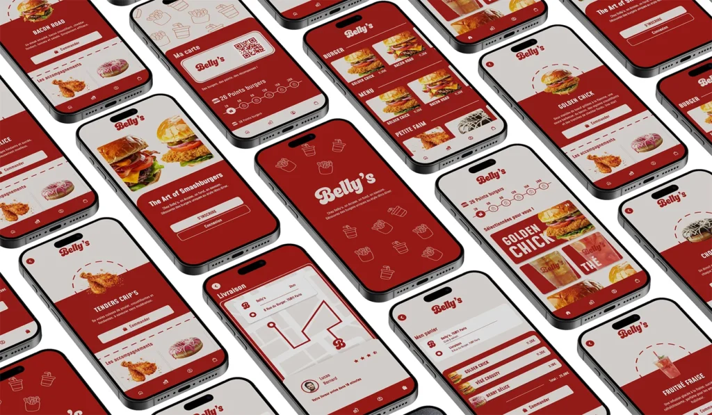 Le projet consistait à imaginer une application de commande pour un restaurant de burgers. L’objectif était de proposer une interface simple, pensée pour faciliter la navigation et la prise de commande.